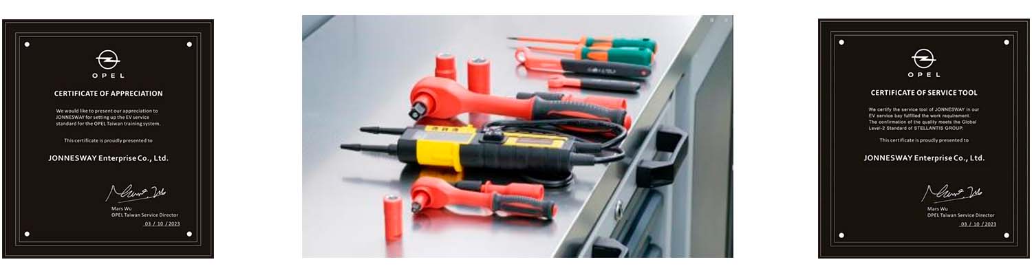 В 2023 году специалисты JONNESWAY успешно представили компании Opel на Тайване профессиональные шкафы для хранения Jonnesway с диэлектрическими инструментами, а также помогли создать и оборудовать рабочие места технического обслуживания, соответствующие стандартам Opel. Как шкафы для хранения, так и диэлектрические комплекты инструментов были изготовлены по индивидуальному заказу в соответствии с спецификациями и требованиями Opel. В дополнение к шкафам также были разработаны тележка для компьютерной диагностики и подъемный стол для обслуживания аккумуляторных батарей. Этот опыт был распространен на 12 сервисных центров Opel на Тайване.